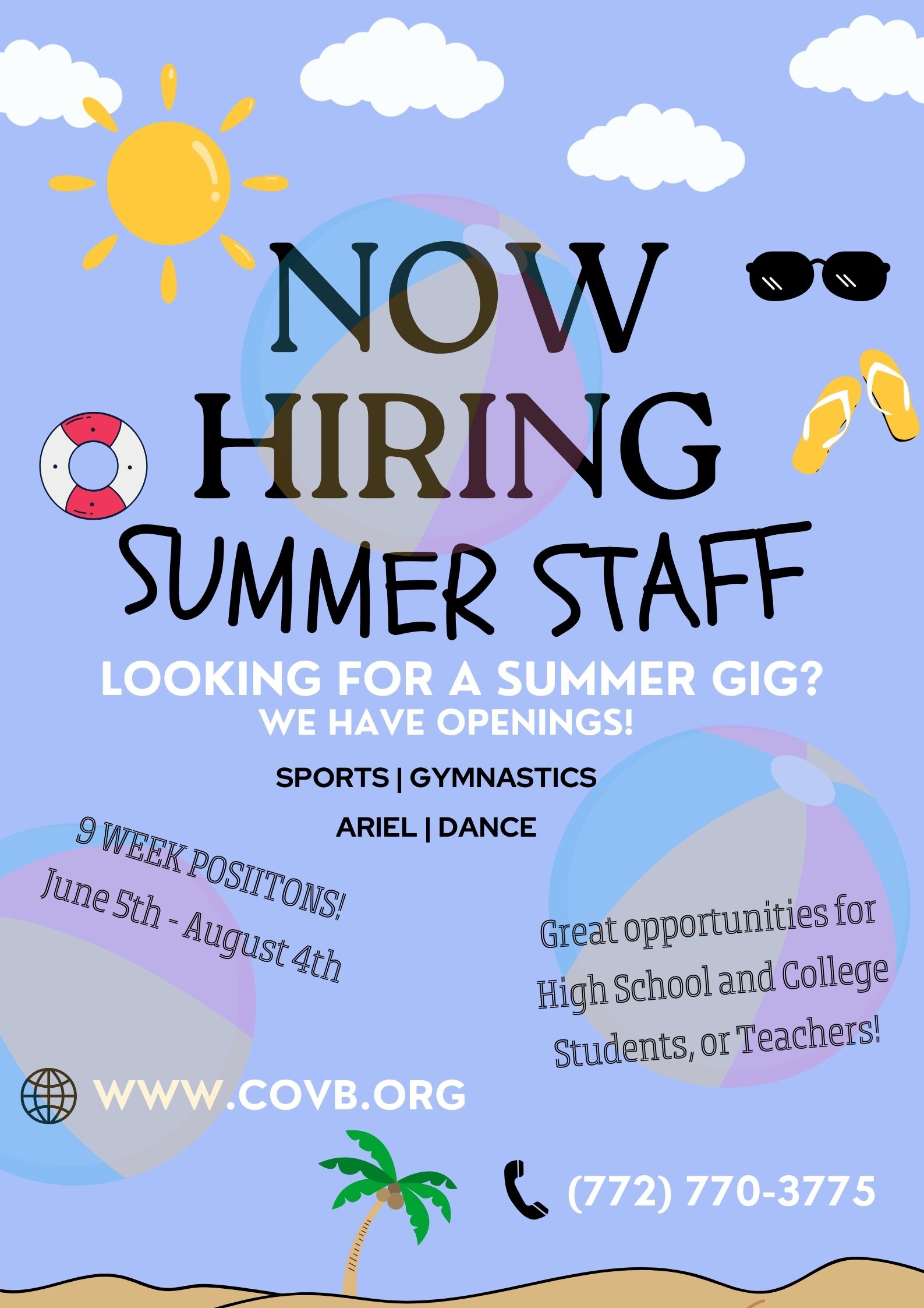 Here at the City of Vero Beach - Recreation Department has a number of openings for seasonal workers, including camp counselors, lifeguards, and a number of more specialized positions!